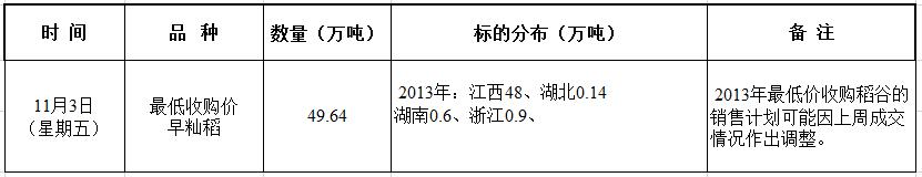 按照《國家發展和改革委員會 國家糧食局 財政部 國家食品藥品監督管理總局 中國農業發展銀行關于做好稻谷庫存消化工作的通知》(國糧調〔2017〕106號)文件的有關規定,經國家有關部門研究決定,2017年11月3日在國家糧食局糧食交易協調中心及聯網的各省(區、市)國家糧食交易中心組織開展2013年最低收購價稻谷競價交易,請交易會員通過國家糧食交易中心網站(www.grainmarket.com.cn)登錄“國家糧食電子交易平臺→我要買糧→參加競價交易→2013年最低收購價稻谷競價銷售”參與交易。現就有關事項公告如下: